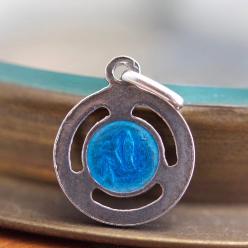 ルルドの聖母 ブルーエマイユの円形メダイ